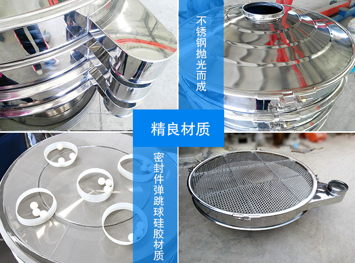 304不銹鋼拋光而成,彈簧外圍加不銹鋼防護罩,密封件及彈跳球均采用醫藥行業硅膠材質,所以材料的選擇都是嚴格按照標準來走的,大漢廠家的不銹鋼旋振篩有12個月的超長質量保證,期間出現非人為因素的故障,廠家可以包退換。