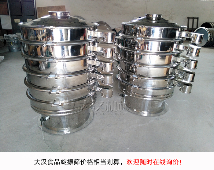 以上是對食品旋振篩多少錢的介紹,有關(guān)食品旋振篩詳細報價單,您可以隨時咨詢新鄉(xiāng)大漢姐夫,廠家會有專業(yè)銷售經(jīng)理與您對接,提供給您全面詳細的報價單,并指導設備選型工作。