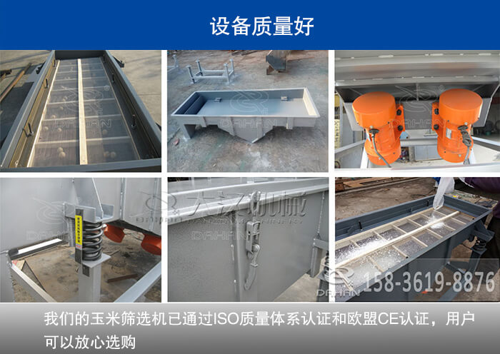 在玉米篩選機選材開始,到設備送到用戶手中為止,我們將高品質滲透在每一個細節內,一直致力于把好的設備和好的施工工藝介紹給用戶,保證用戶利益大化,我們的玉米篩選機選用厚度在10-12mm之間的板材,設備生產過程中優嚴格的質量管理,能夠極大地提高設備的品質,穩定設備的性能,目前,我們的玉米篩選機已通過ISO質量體系認證和歐盟CE認證,用戶可以放心選購。