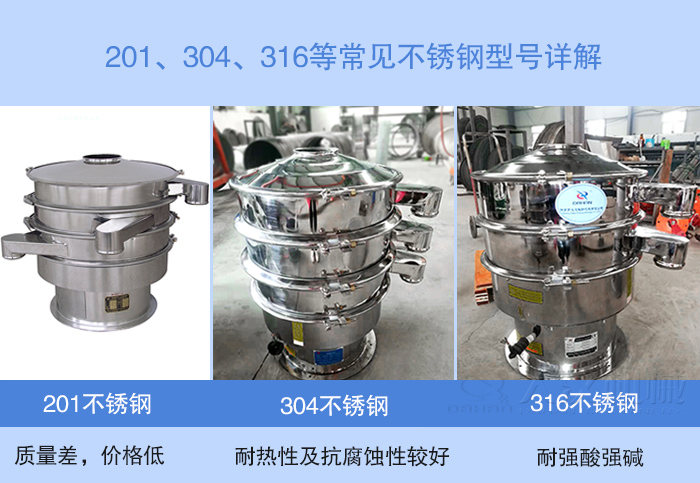 不銹鋼振動篩材質主要由201、304及316不銹鋼等三種材質: