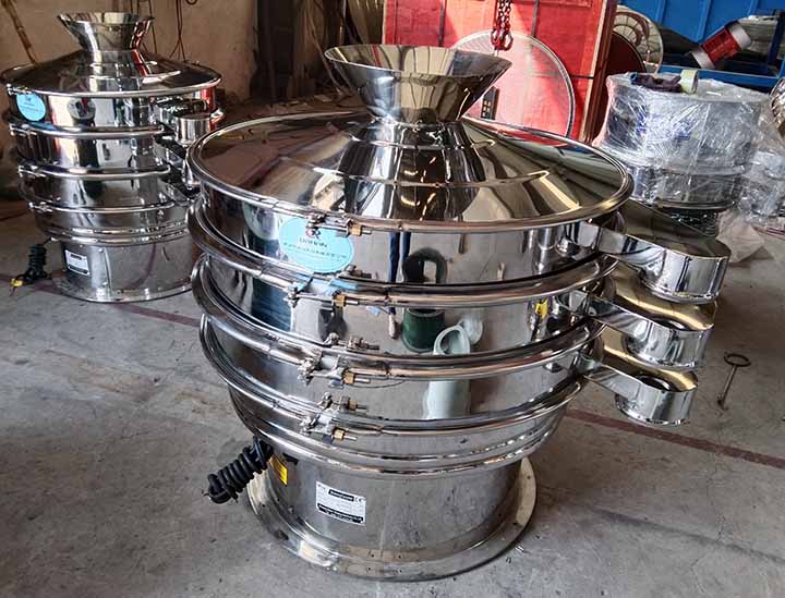不銹鋼旋振篩生產廠家通過良好的制造水準,使多個行業反應良好。某面粉廠采用定制旋振篩,配置 180 目雙層篩網與超聲波防堵系統,配合 CIP 在線清洗裝置,使面粉過篩效率達 98.5%,異物投訴率降低,粉塵濃度符合安全標準?;ぜ瘓F采用超聲波旋振篩分級催化劑,雙振源設計使篩分效率提升 30%-50%,堵網清理時間減少 80%,適配精細化工原料處理需求。