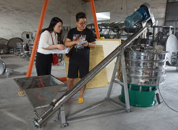 螺旋輸送機為不銹鋼材質(zhì)跟旋振篩配套使用,進料口端加不銹鋼料斗,方便進料;該旋振篩為不銹鋼旋振篩,底桶為碳鋼材質(zhì),與物料接觸為不銹鋼材質(zhì)。