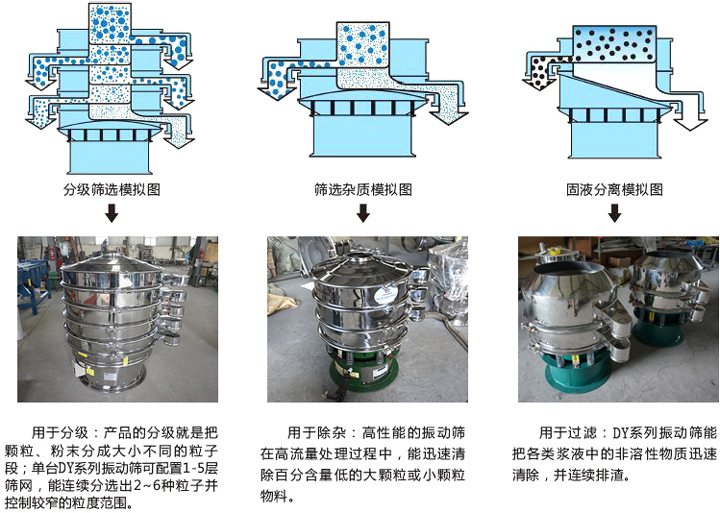 在篩箱的振動作用下,物料在篩面上產生螺旋狀運動。較大的物料被離心力推向篩箱的外側,而較小的物料則逐漸通過篩孔,落入下方的出料口。篩孔的大小可以根據物料的要求進行選擇,以實現不同粒徑的篩分和分級。