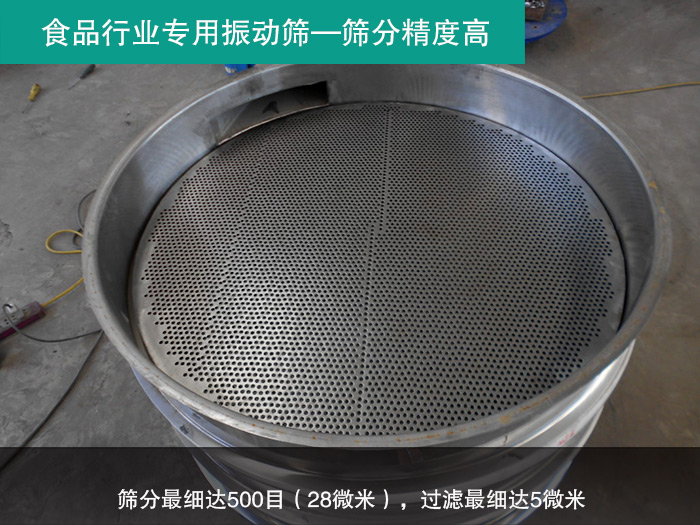 不銹鋼振動篩篩分精度高,篩分細達500目(28微米),過濾細達5微米,符合食品行業的高精度篩分需求。