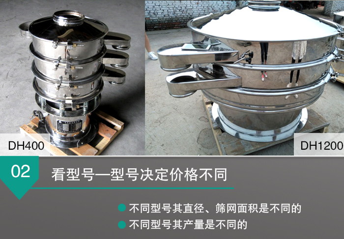 新鄉大漢全不銹篩振動篩生產的直線振動篩型號從DH600到DH2000,不同型號的全不銹鋼振動篩,其直徑、篩網面積是不同的,所以這就決定了不同型號的全不銹鋼振動篩產量是不同的,這也必然會造成全不銹鋼振動篩價格上存在明顯的差異。
